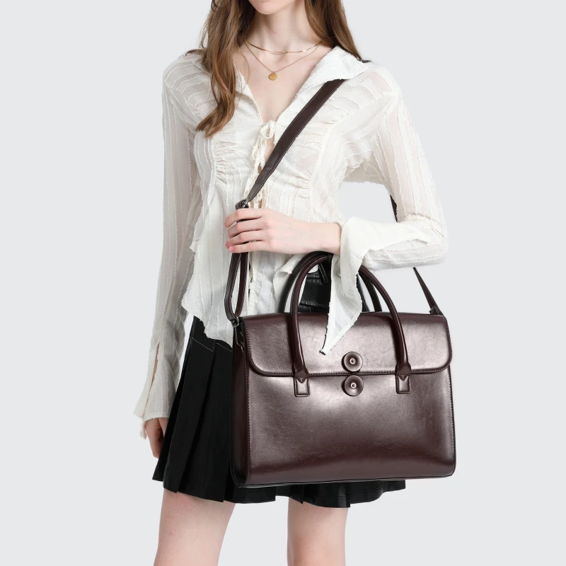 Designed with the modern woman in mind, this briefcase is not just a bag; it's a statement of style and functionality. The large business leather briefcase is spacious enough to accommodate all your essentials, from documents to personal items. Its softness and lightweight nature make it a comfortable carry for the office or on-the-go. The acrylic lining material ensures your items remain pristine, while the 105℃挥发物≤:NoEnName_Null specification guarantees that the bag meets high-quality standards.